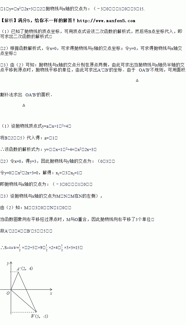 (3)将该函数图象向右平移,当图象经过原点时,A、B两点随图象移至A′、B′,求△O A′B′的面积.