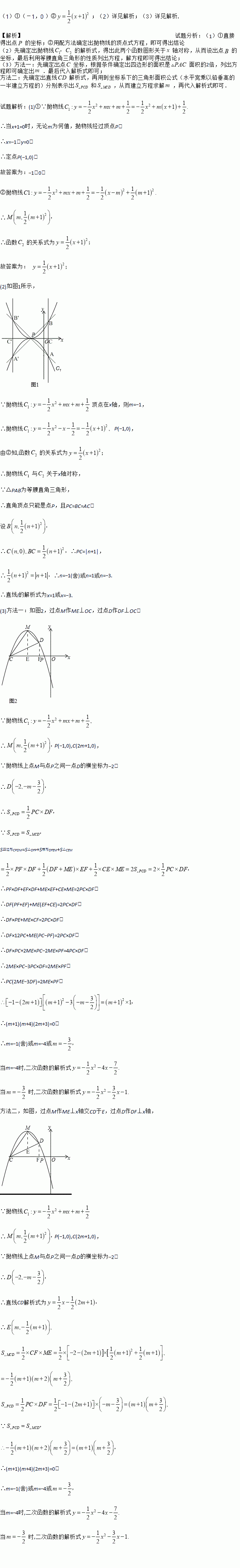 (3) 如图2,二次函数的图象C1的顶点M在第二象限、交x轴于另一点C,抛物线上点M与点P之间一点D的横坐标为-2,连接PD、CD、CM、DM.若S△PCD=S△MCD,求二次函数的解析式