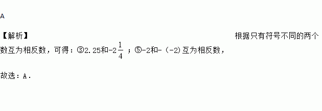 A 【解析】根据只有符号不同的两个数互为相反数,可得:③2.25和?2;⑤-2和-(-2)互为相反数, 故选:A.