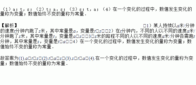 (1)某人持续以a米/分钟的速度t分钟内跑了s米,其中常量是_______________ ,变量是_______________;