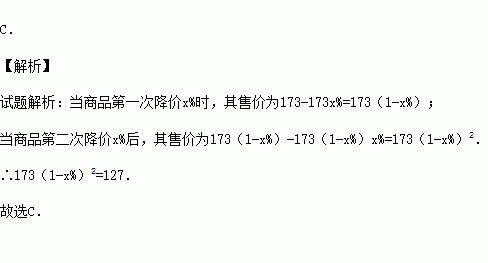 某品牌服装原价173元,连续两次降价后售价为127元,下面所列方程中正确的是( )