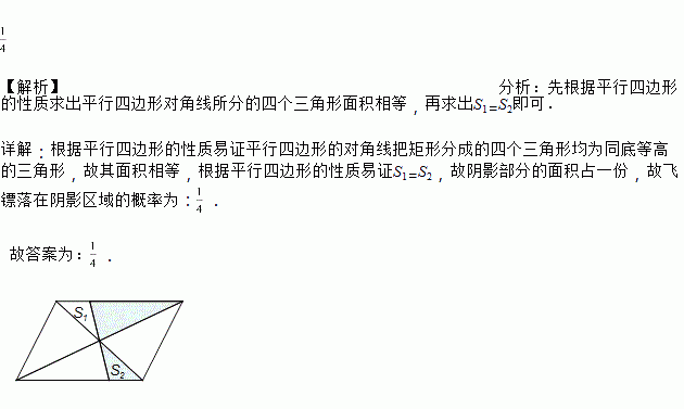 小明把如图的平行四边形纸板挂在墙上,玩飞镖游戏(每次飞镖均落在纸板上),则飞镖落在阴影区域的概率是_____.