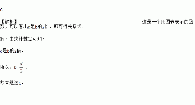 下面的表格列出了一个实验的统计数据,表示将皮球从高处落下时,弹跳高度b与下降高度d的关系,下面能表示这种关系的式子是( )