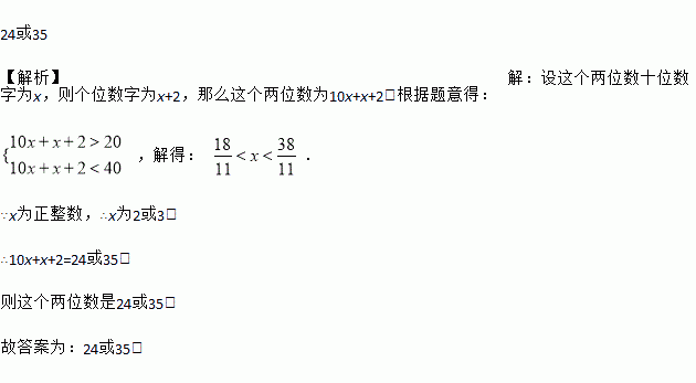 有一个两位数,其个位数字比十位数字大2,已知这个两位数大于20且小于40,那么这个两位数是__.