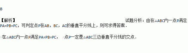 在△ABC内一点P满足PA=PB=PC,则点P一定是△ABC( )