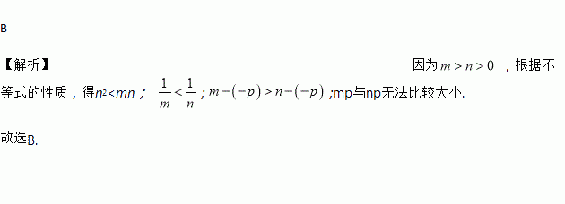 A. mp>np B. n2<mn C. D.