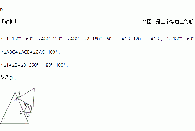 如图,是三个等边三角形(注:等边三角形的三个内角都相等)随意摆放的图形,则等于
