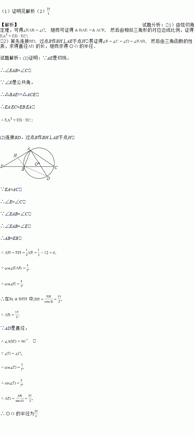 (1)求证:EA2=EB•EC;