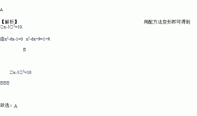 用配方法解一元二次方程x2-6x-1=0时,方程可变形为( )