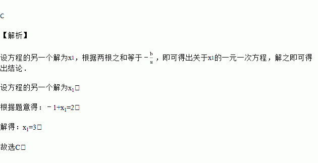 若关于x的一元二次方程x2﹣2x+m=0有一个解为x=﹣1,则另一个解为( )