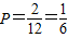 点评:此题考查概率的求法:如果一个事件有n种可能,而且这些事件的可能性相同,其中事件A出现m种结果,那么事件A的概率P(A)=