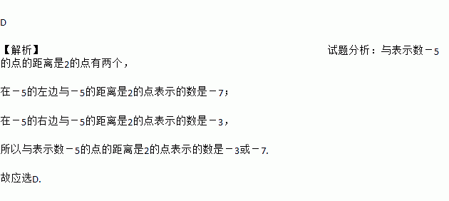 在数轴上,与表示数﹣5的点的距离是2的点表示的数是( )