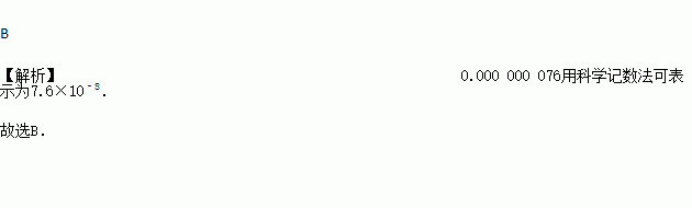 A. 7.6×10﹣11 B. 7.6×10﹣8 C. 7.6×10﹣9 D. 7.6×10﹣5