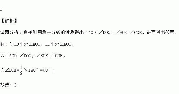 (2015秋•孝义市期末)如图,O是直线AB上的一点,过点O任意作射线OC,OD平分∠AOC,OE平分∠BOC,则∠DOE( )