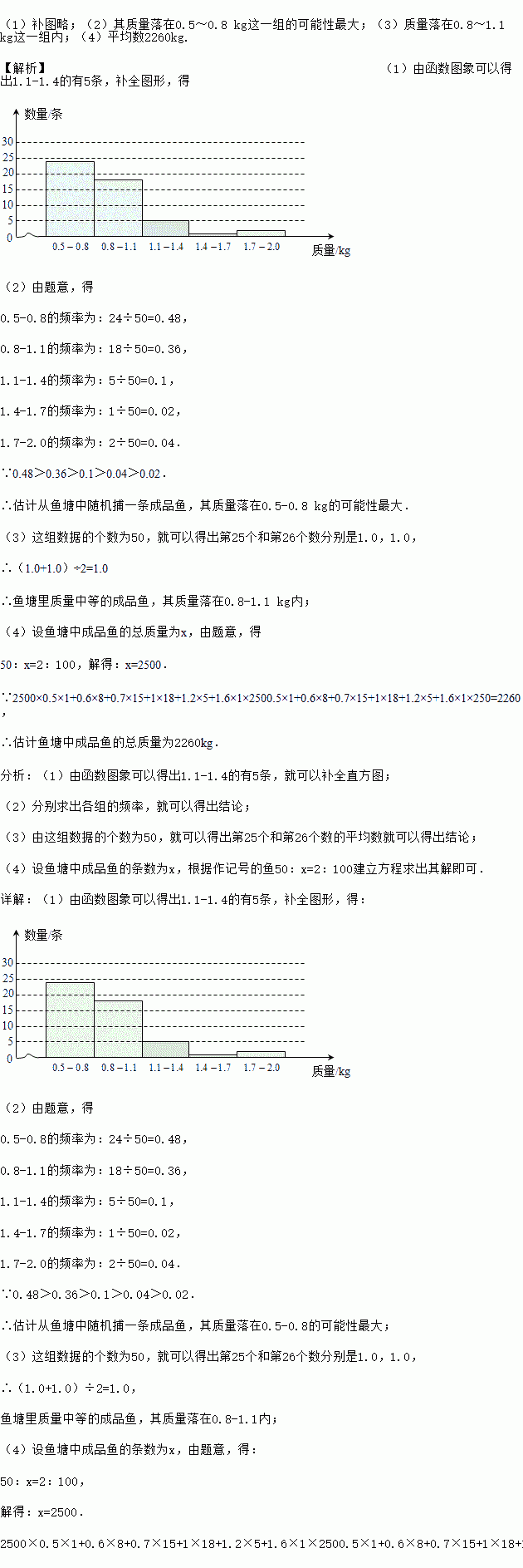 (4)请你用适当的方法估计鱼塘中成品鱼的总质量(精确到1 kg).