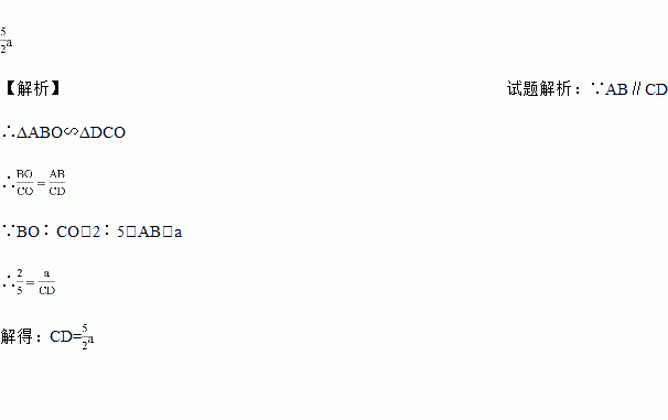 如图,AB∥CD,BO∶CO=2∶5,AB=a,则CD=____.