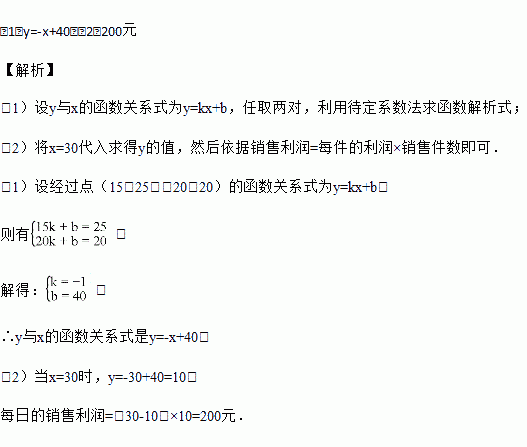 某产品每件的成本为10元,在试销阶段每件产品的日销售价x(元)与产品的日销售量y(件)之间的关系如下表: