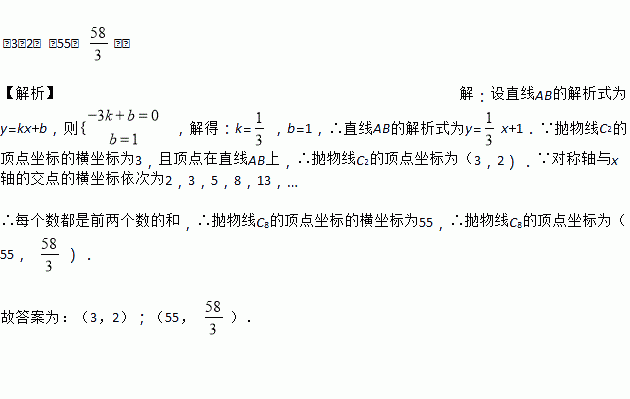 如图,在平面直角坐标系xoy中,A(﹣3,0),B(0,1),形状相同的抛物线Cn(n=1,2,3,4,…)的顶点在直线AB上,其对称轴与x轴的交点的横坐标依次为2,3,5,8,13,…,根据上述规律,抛物线C2的顶点坐标为_____;抛物线C8的顶点坐标为_____.