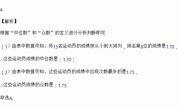 根据表中信息可以判断这些运动员成绩的中位数、众数分别为( )