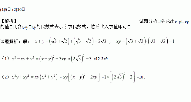 求(1)x2-xy+y2;(2)x3y+xy3的值.