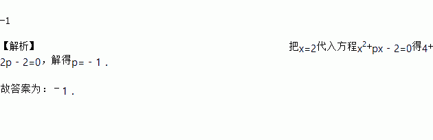 一元二次方程x2+px﹣2=0的一个根为2,则p的值是_________.