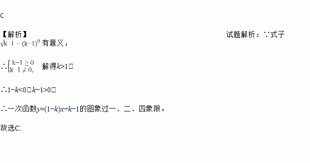 .若式子+(k–1)0有意义,则一次函数y=(1–k)x+k–1的图象可能是( )
