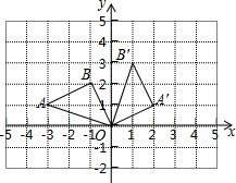 解:如图所示:△A′B′O即为所求,A′坐标为:(2,1).