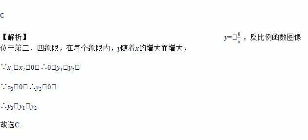 反比例函数图象上有三个点,其中,则的大小关系是 ( )