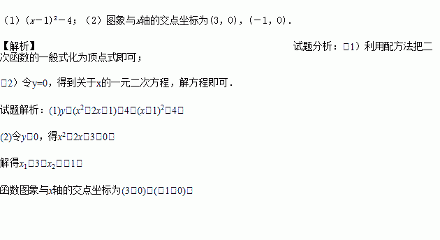 (1)用配方法将表达式化为y=(x-h)2+k的形式;