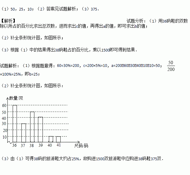 (3)商场经理准备购进同一品牌的旅游鞋1500双,请根据市场实际情况估计他应该购进38码的鞋多少双?