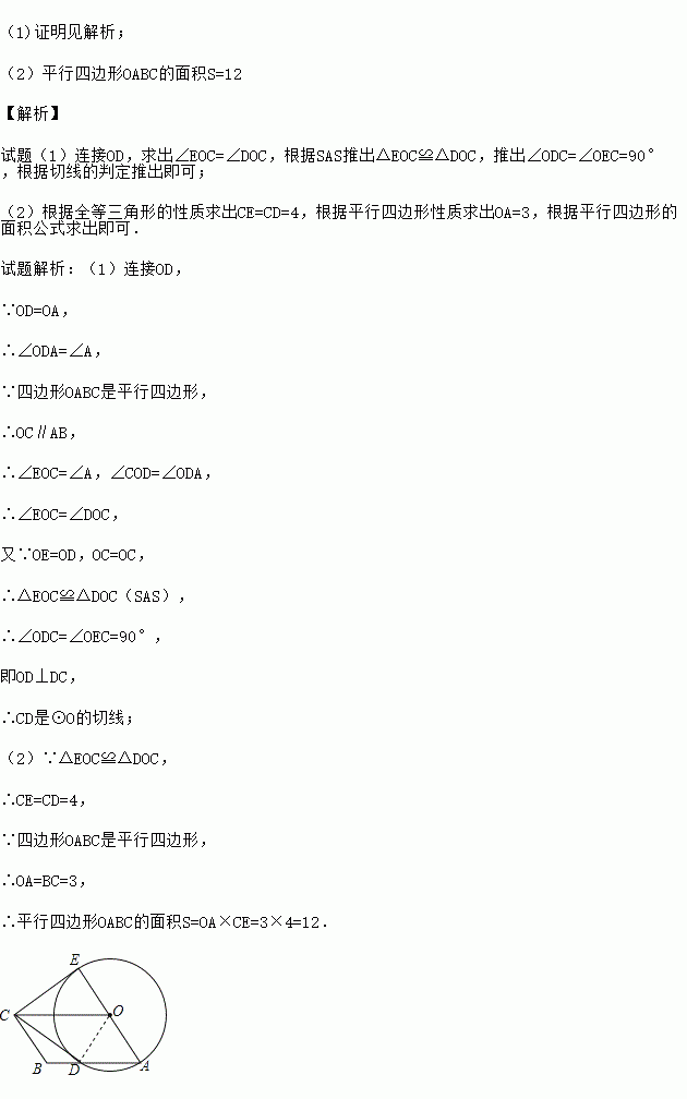 (2)若BC=3,CD=4,求平行四边形OABC的面积.