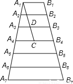 王大伯要做一张如图所示的梯子,梯子共有7级互相平行的踏板,每相邻两级踏板之间的距离都相等.已知梯子最上面一级踏板的长度A1B1=0.5m,最下面一级踏板的长度A7B7=0.8m.则A3B3踏板的长度为( )A.0.6m
