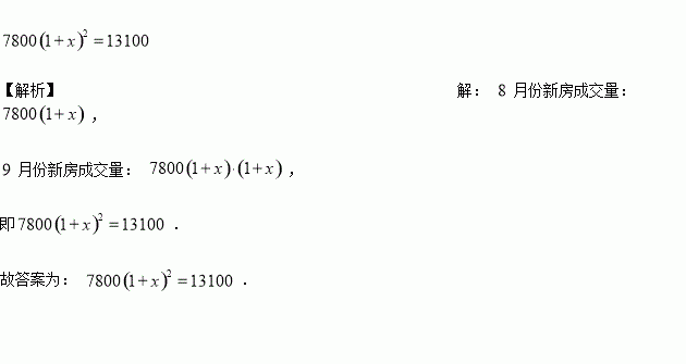 数据显示,南京市月新房成交量是套, 月份高达套,若月成交量平均增长率为,则可列方程__________.