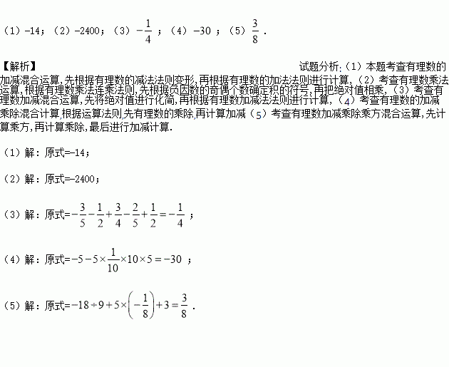 (1)(- 15)+(+3)-(-4)-(+6) (2) ![]()