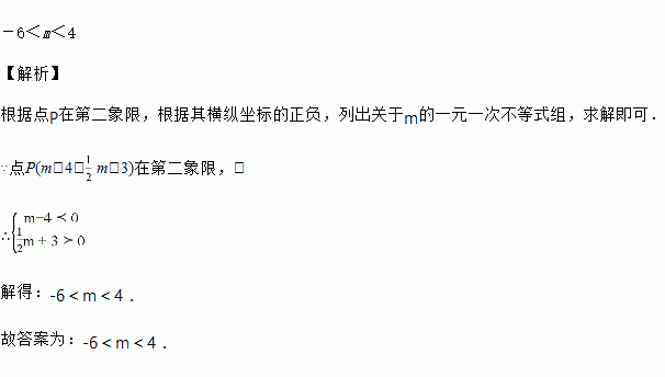 已知点P(m-4,m+3)在第二象限,则m的取值范围是________.