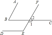 分析:根据两直线平行,同位角相等可得∠2=∠B,两直线平行,内错角相等可得∠E=∠1,再根据∠1、∠2是邻补角解答.