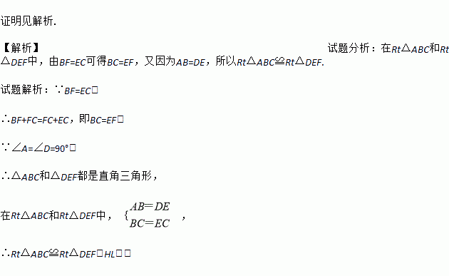 如图,∠A=∠D=90°,AB=DE,BF=EC.求证:Rt△ABC≌Rt△DEF.