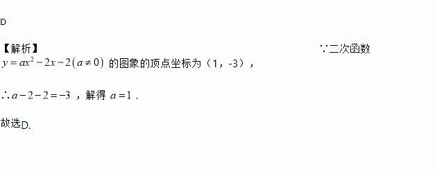 D 【解析】∵二次函数的图象的顶点坐标为(1,-3), ∴,解得 . 故选D.