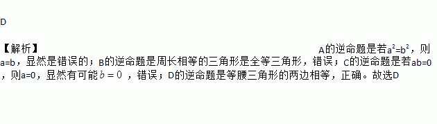 C. 若a=0,则ab=0 D. 有两边相等的三角形是等腰三角形