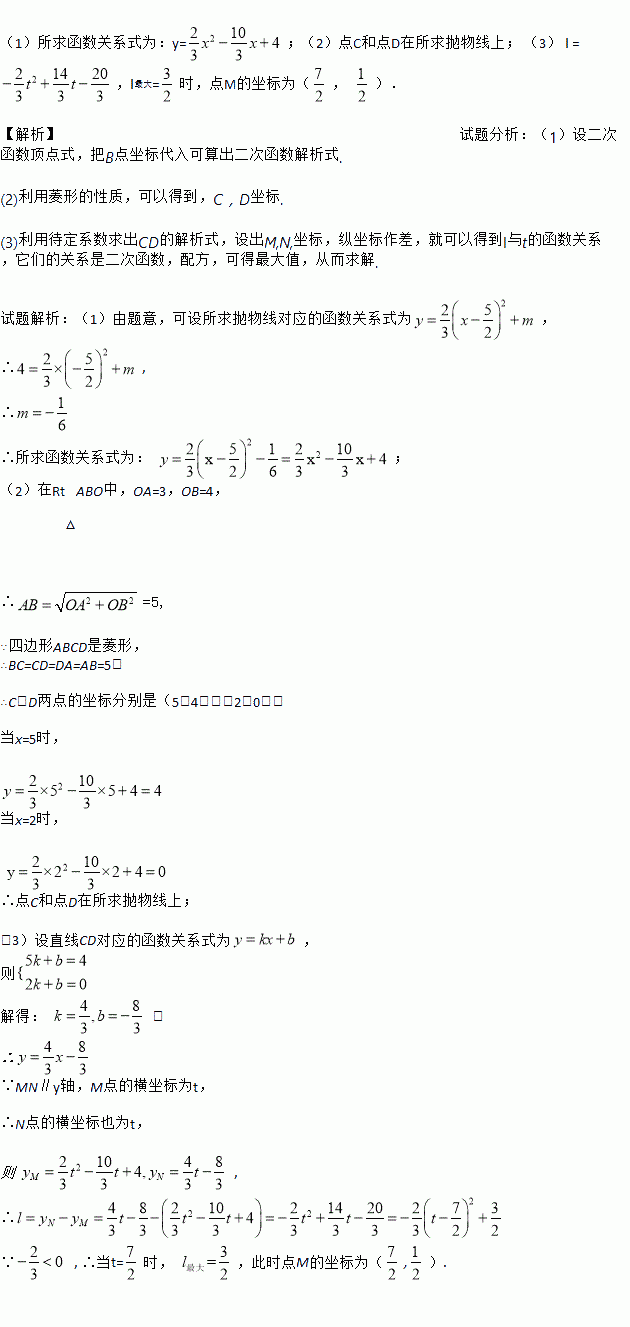 (2)若△DCE是由△ABO沿x轴向右平移得到的,当四边形ABCD是菱形时,试判断点C和点D是否在该抛物线上,并说明理由;