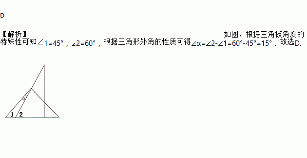 查看答案一副三角板如图叠放在一起,则图中∠α的度数为( )