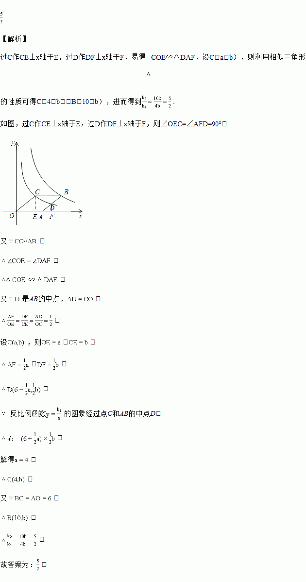 如图,在平面直角坐标系中,点A为,点C是第一象限上一点,以OA,OC为邻边作?OABC,反比例函数的图象经过点C和AB的中点D,反比例函数图象经过点B,则的值为______.