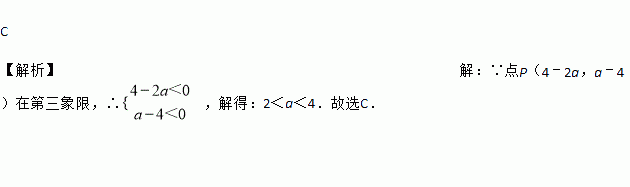 在坐标平面内,点P(4﹣2a,a﹣4)在第三象限.则a的取值范围是( )