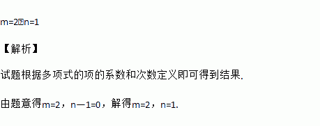 如果多项式3xm﹣(n﹣1)x+1是关于x的二次二项式,试求m,n的值.