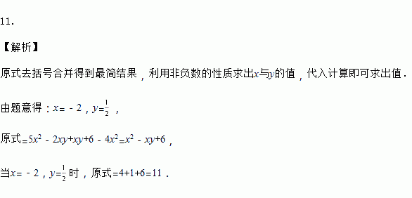 若(x+2)2+|y-|=0,求5x2-[2xy-3+4x2]的值.
