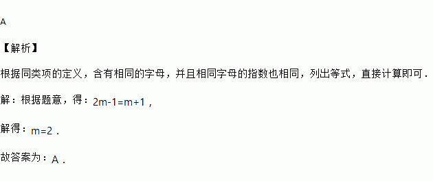 如果3ab2m-1与abm+1是同类项,那么m等于( )