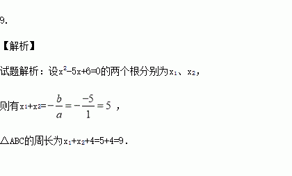 若△ABC的一边为4,另两边分别满足x2-5x+6=0的两根,则△ABC的周长为 .