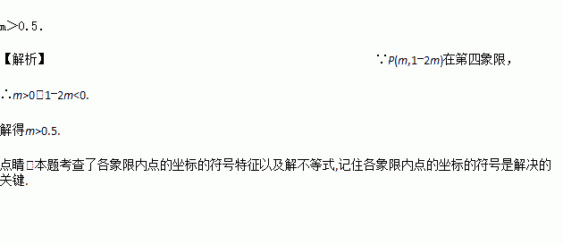 如果点P(m,1﹣2m)在第四象限,那么m的取值范围是______.