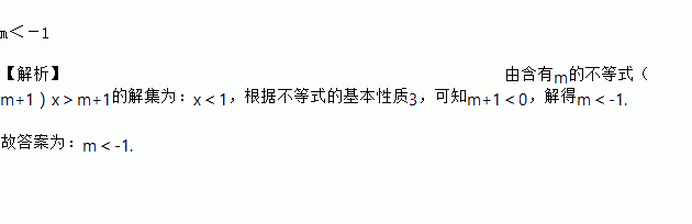 如果m是实数,且不等式(m+1)x>m+1的解是x<1,那么实数m的值为 __________.