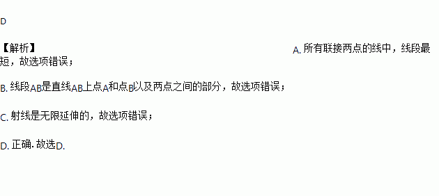 A. 在所有连接两点的线中,直线最短 B. 线段AB是点A和点B之间的距离